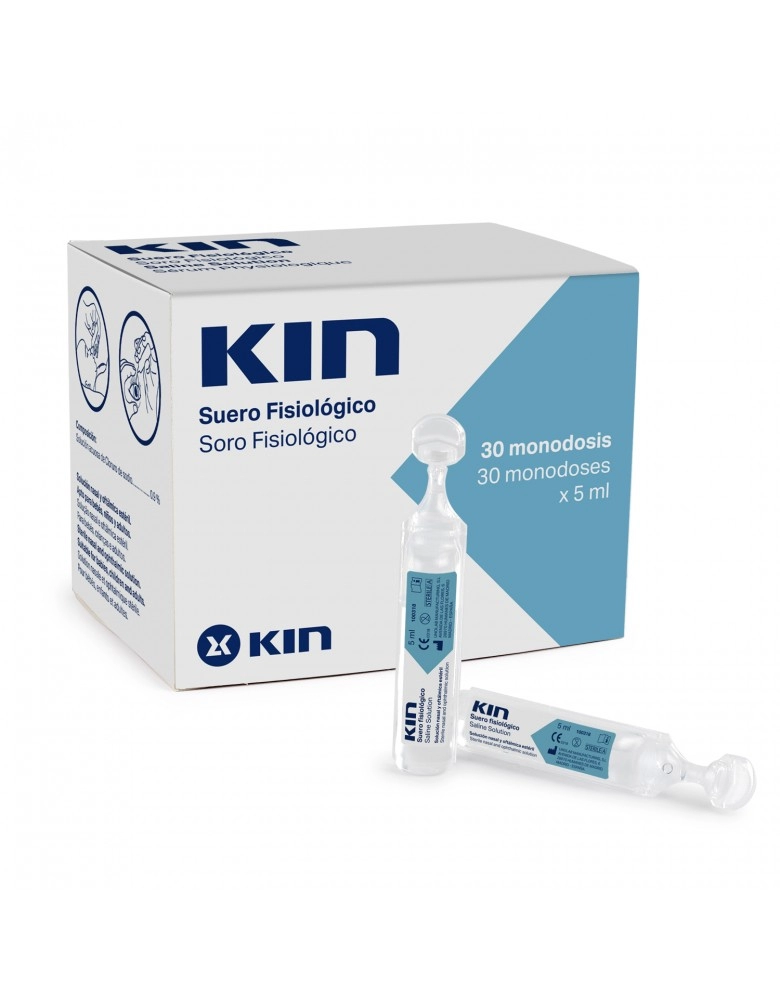 KIN's single-dose physiological serum acts by mechanical drag, cleaning dirt from both the nostrils and the surface of the eye. Without preservatives or buffering agents, it allows direct contact with the nasal mucosa and eyes without irritating them. It is indicated for both adults and children and also babies. Usually used to perform nasal washes and help eliminate mucus.