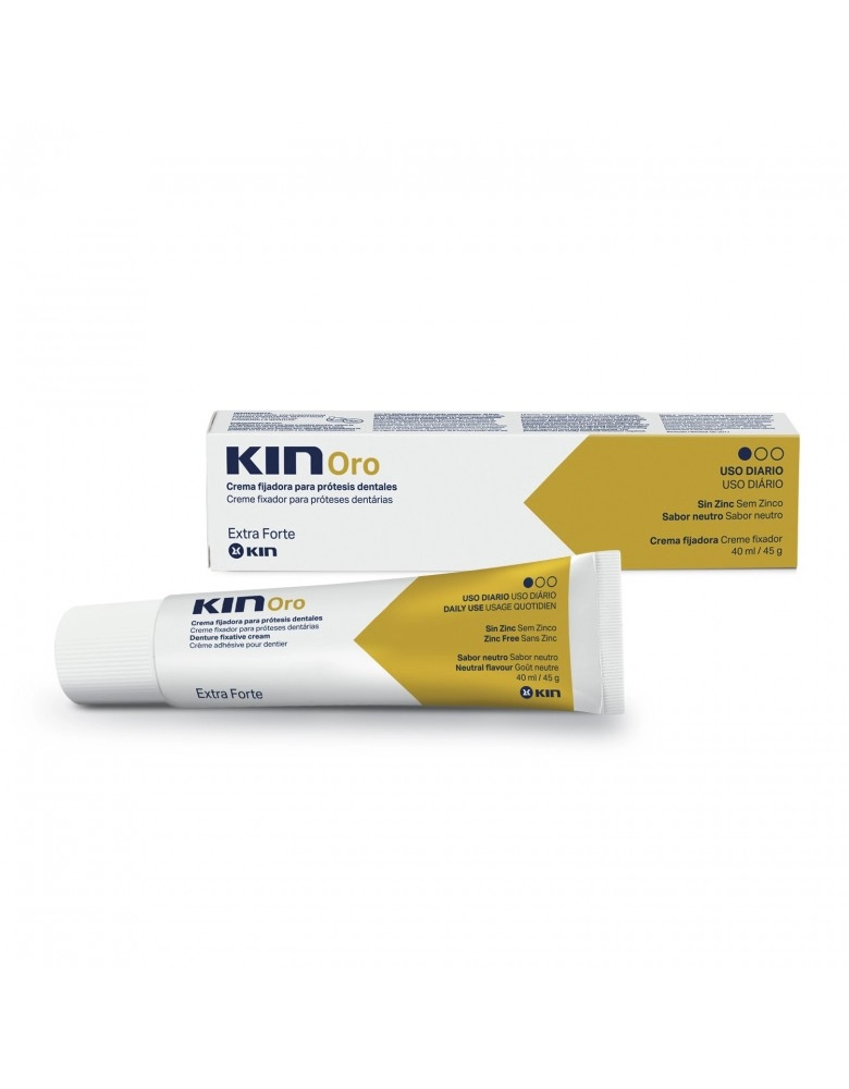 KIN Oro extraforte es una crema especialmente formulada para fijar de manera firme, segura y duradera las prótesis dentales, confiriendo seguridad y confort al portador de prótesis.