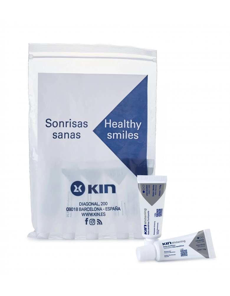 Sachet contenant 10 unités de KIN Whitening toothpaste 12 g.Prix par unité.